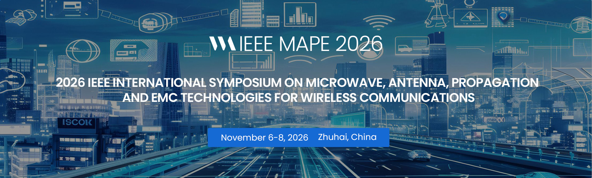 Welcome to attend the 2026 IEEE 11th International Symposium on Microwave, Antenna, Propagation and EMC Technologies for Wireless Communications (IEEE MAPE 2026), which will be held in Zhuhai, China from November 6 to 8, 2026. MAPE2026 is supported by the IEEE China Council, Professional Committee of Electronic Metrology, Chinese Society for Measurement (CSM), Beijing Institute of Technology, Zhuhai, and is technically supported by IEEE Beijing Section. MAPE was first organized by IEEE Beijing Section in 2005. After several years, it becomes the flagship wireless event geared toward wireless communication industry professionals interested in the latest research and design.